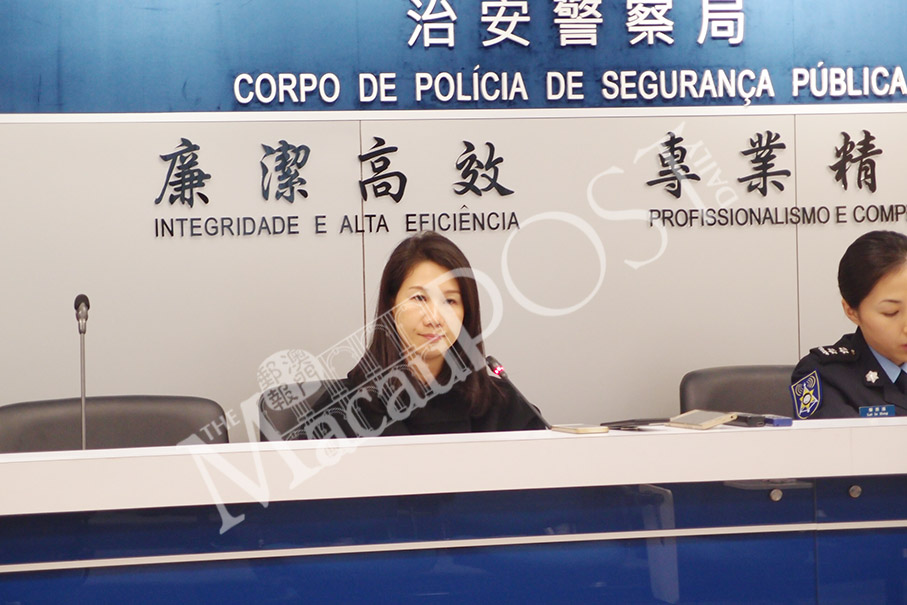 Judiciary Police (PJ) spokeswoman Yeung Sau Chan holds yesterday’s regular press conference about the city’s latest crime cases. Photo: Joel Chu