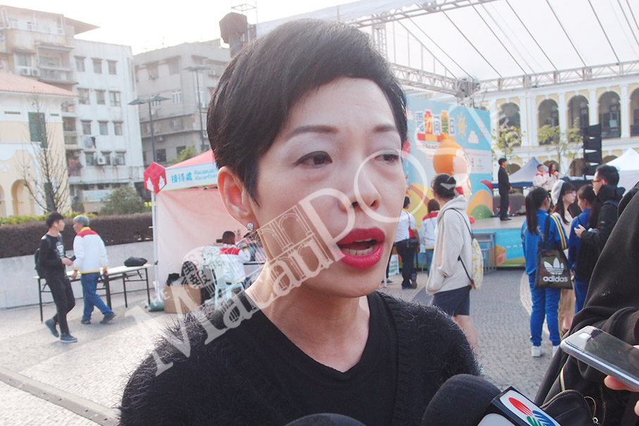 Companhia de Electricidade de Macau (CEM) Regulatory Affairs and Corporate Communication Office Senior Manager Cecilia Nip Lai Peng speaks to reporters on the sidelines of a CEM event in Praça do Tap Seac yesterday. Photo: Joel Chu