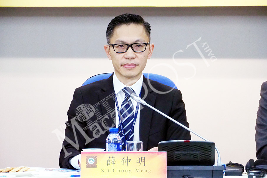 Judiciary Police (PJ) Acting Director Sit Chong Meng poses during yesterday’s Spring Festival luncheon at the PJ headquarters in Zape. Photo: Iong Tat Choi