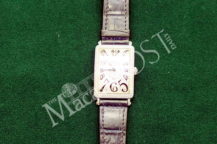 This HK$500,000 watch stolen by the suspect from the mainland is displayed in a police press room yesterday. Photo: Iong Tat Choi