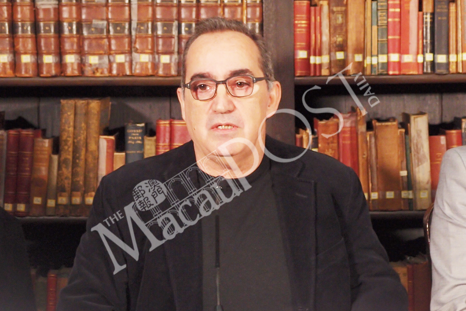 Macau Literary Festival Director Ricardo Pinto speaks during a press conference about next month’s event, at the IACM Building Library yesterday. Photo: Joel Chu