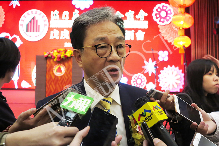 Association of Property Agents and Realty Developers of Macau Chairman Ung Choi Kun speaks to reporters at Plaza Restaurant in Zape yesterday. Photo: MPDG