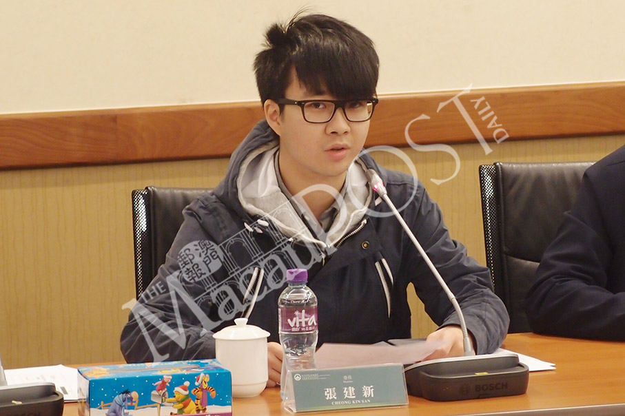 Northern District Community Service Consultative Council member Cheong Kin San speaks during a regular meeting of the council in Areia Preta yesterday. Photo: Joel Chu
