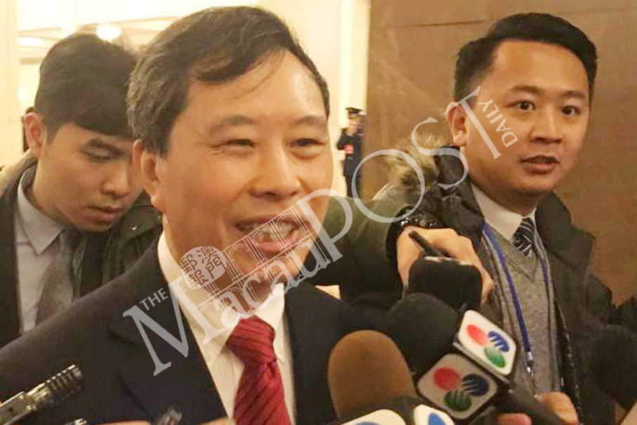 Central People’s Government Liaison Office in Macau Vice Director Chen Sixi speaks to reporters yesterday in Beijing on the sidelines of the first session of the 13th National People’s Congress (NPC). Courtesy: TDM