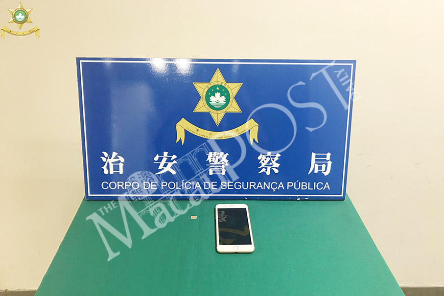 This handout photo provided by the Public Security Police (PSP) yesterday shows the SIM card and the smartphone used by the Hong Kong suspect.