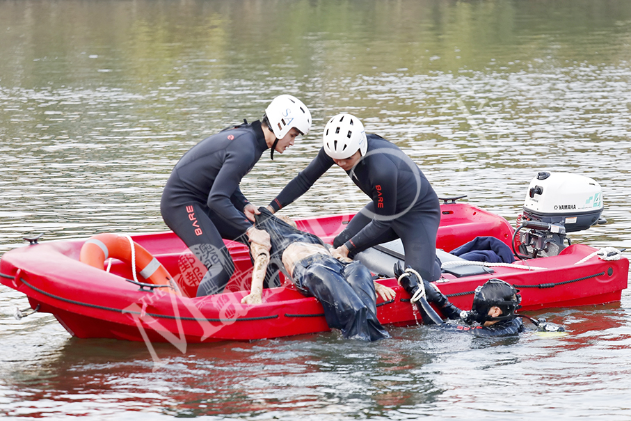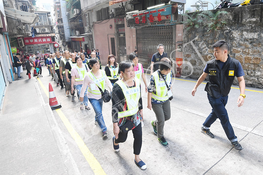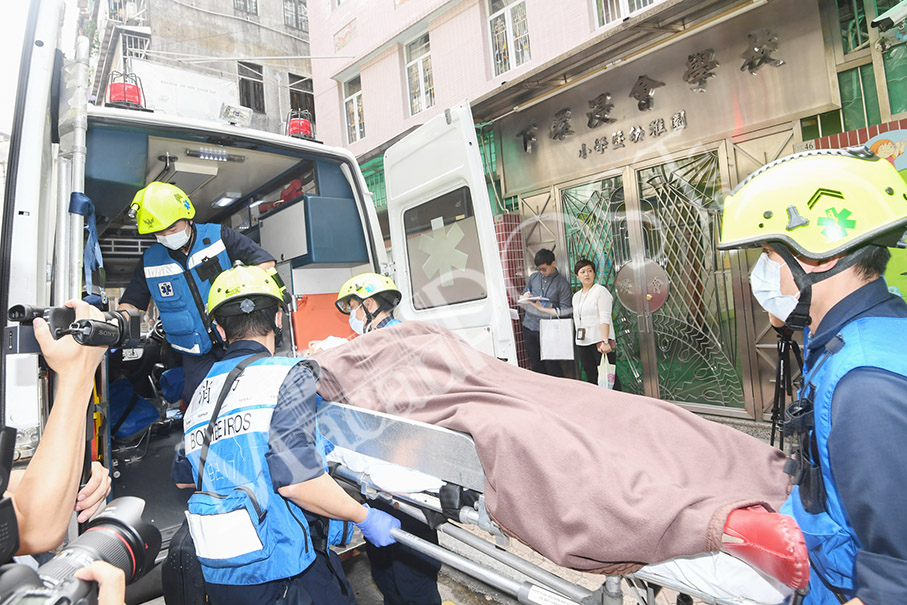 The three photos provided by the Government Information Bureau (GCS) on Saturday show different aspects of the “Crystal Fish” drill, such as paramedics taking an infirm person to an ambulance in Ha Van district, participants being “evacuated” to Instituto Salesiano from Ha Van district and customs officers “rescuing a man” from a simulated flooded underground car park outside the Macau Customs Service headquarters.