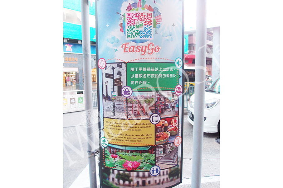 According to Celeste Jorge, there are 30 tourist sign posts with QR codes on them which have been set up on the peninsula, Taipa and Coloane. After scanning the QR code, a user can get access to information including the history, location and an audio guide about the bureau’s municipal facilities. She said that EasyGo could also be used to show the way to a specific bus stop, as well as other suggested walking tour routes and the estimated walking time.