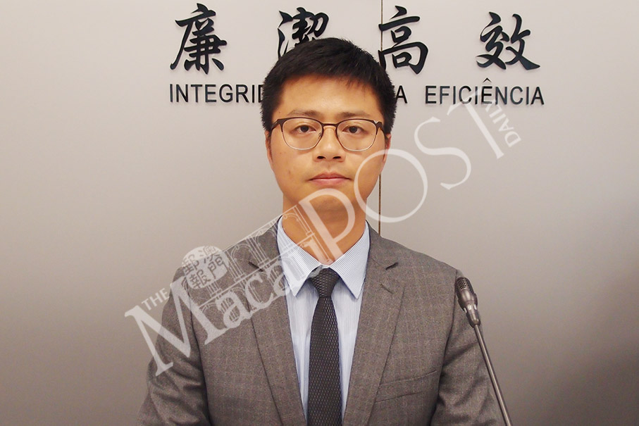 Judiciary Police (PJ) spokesman Leng Kam Lon poses during yesterday’s regular press conference. Photo: Joel Chu