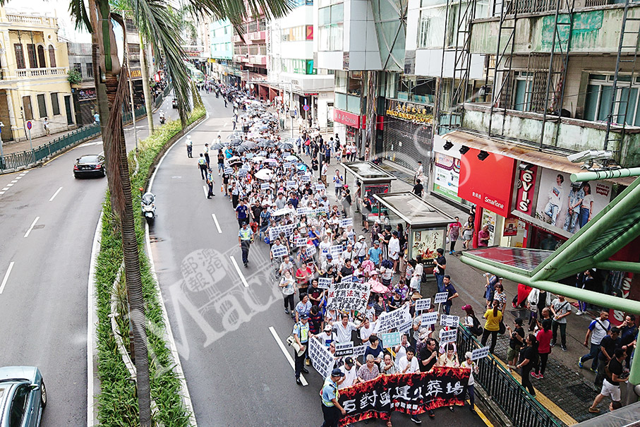 Hundreds of residents yesterday protested against the possible construction of a crematorium in Macau, saying that it is not suitable for the densely populated city to have a crematorium anywhere on its tiny land area of just 30.5 square kilometres.