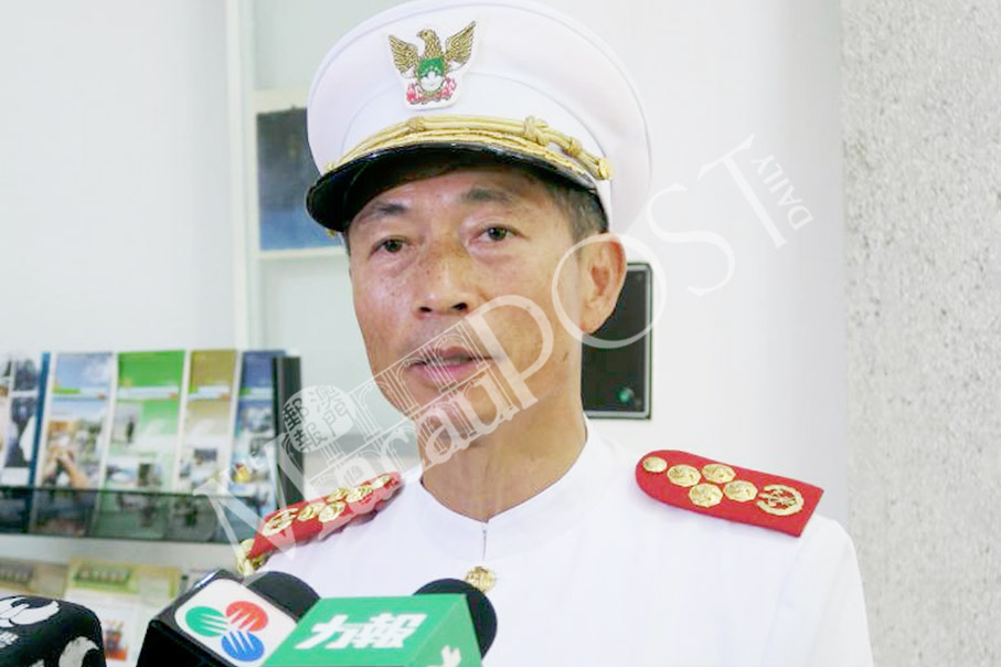 Macau Public Security Forces Academy Director Hoi Sio Iong speaks to reporters on the sidelines of yesterday’s opening ceremony of a two-day “Innovation and Development in the Policing Education” seminar on the academy’s campus in Coloane. Courtesy TDM