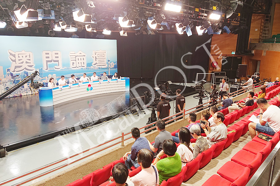 Guest speakers and audience members attend TDM’s Macau Forum in its Macau Forum studio in Zape yesterday. Photo: Tony Wong