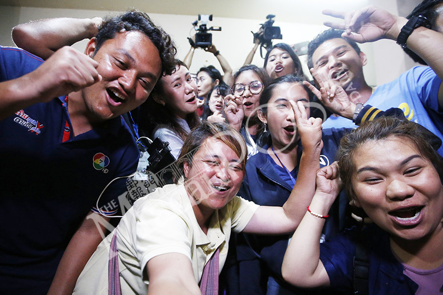 Thai media celebrate as divers evacuate the final four of the boys and their coach trapped at Tham Luang cave yesterday. – AP