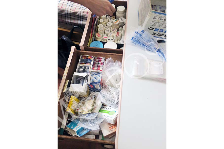 This photo provided by the Health Bureau (SSM) yesterday shows medicines seized in the illegal clinic in Areia Preta district yesterday.