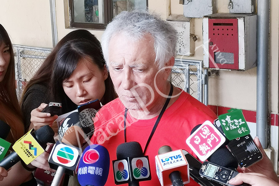Anima President Albano Martins speaks to reporters during yesterday ‘s visit to the Canidrome kennels. Photo: Edwin Yang