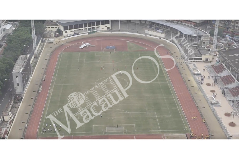 This photo taken from an undated video clip released by the Government Information Bureau (GCS) in June shows the football field and running track, as well as the then still functioning greyhound racetrack (surrounding the red running track) in Fai Chi Kei.