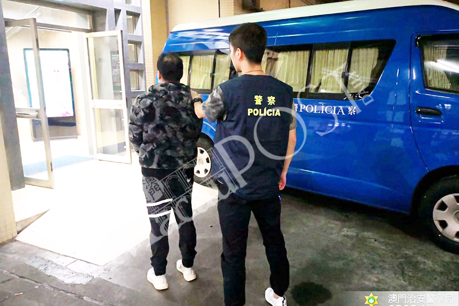 This undated handout photo provided yesterday by the Public Security Police (PSP) shows the self-confessed Peeping Tom accompanied by a police officer.