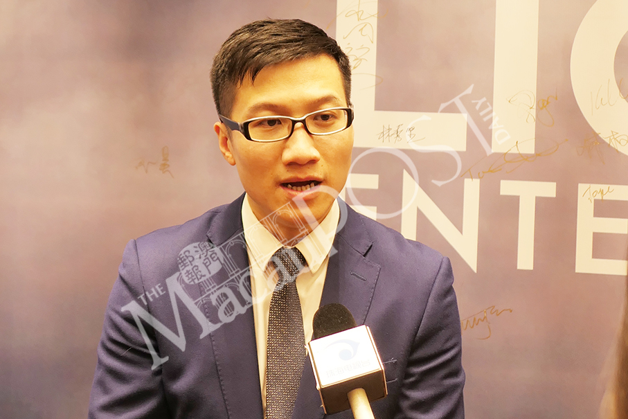 Zhuhai Hengqin Novotown Entertainment Co. Ltd. Director of Sales and Marketing Rick Zeng Jun speaks to reporters at yesterday’s Lionsgate Entertainment World press conference at Zhuhai Marriott Hotel. Photo: Monica Leong