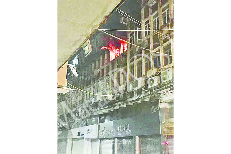 This reader’s photo published by the Macao Daily News on Saturday shows flames coming out of the window of the third floor flat of a Philippine family at Kam Loi Building early Friday.