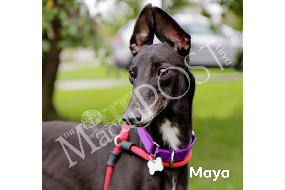 Ex-Canidrome greyhound Maya “poses” in her new home in the US late last month. Photo take from Lesley Wells’ Facebook page