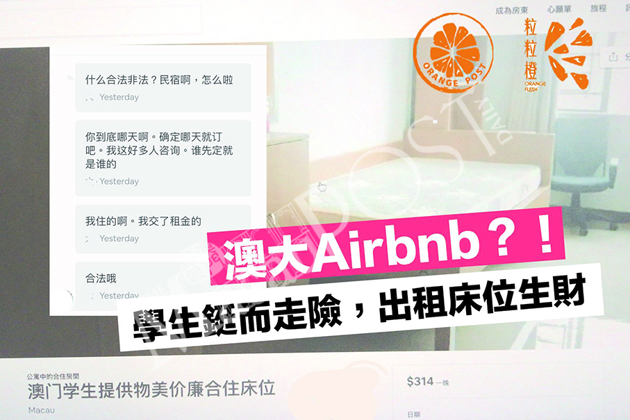 Yesterday’s UM confirmation came after a report by Orange Post – an online media outlet run by the Communication Society of the University of Macau Students’ Union (UMSU) –on Saturday, saying that the postgraduate student started to rent out the unit via online home rental platform Airbnb in October last year. The report did not mention the student’s gender.