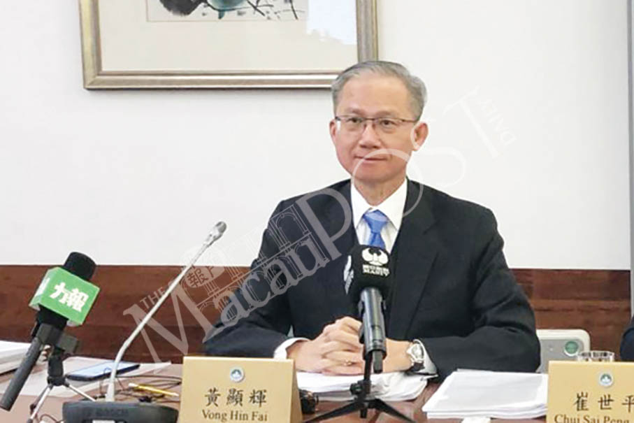 The legislature’s 3rd Standing Committee President Vong Hin Fai addresses yesterday’s press briefing about the government’s taxi sector bill. Courtesy: TDM