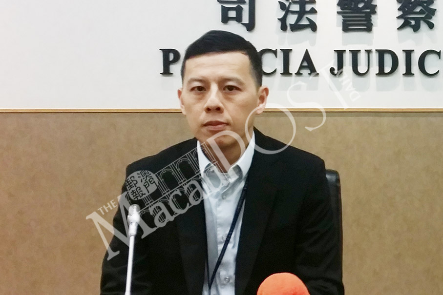 Judiciary Police (PJ) spokesman Chan Wun Man poses during yesterday’s regular press conference. Photo: Kristy Chan