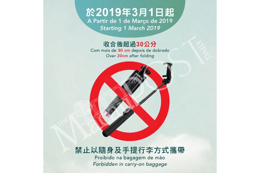 The statement also said that from next Friday, passengers are also barred from putting selfie sticks and camera or video recorder tripods or monopods that exceed 30 cm after folding into their hand luggage.
