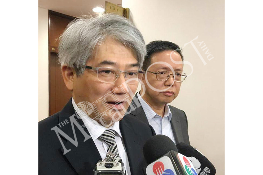 Health Bureau (SSM) Director Lei Chin Ion (left) speaks to reporters at the Legislative Assembly (AL) yesterday, as SSM Centre for Disease Prevention and Control Director Lam Chong looks on. Courtesy: TDM