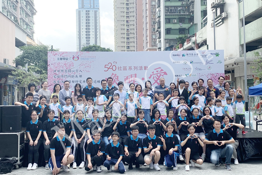 The Macau Community Voluntary Service Association held an event yesterday in the sitting-out area of Lok Yeong Garden estate in Fai Chi Kei district with the aim of promoting “love and care” through a string of performances and game booths.