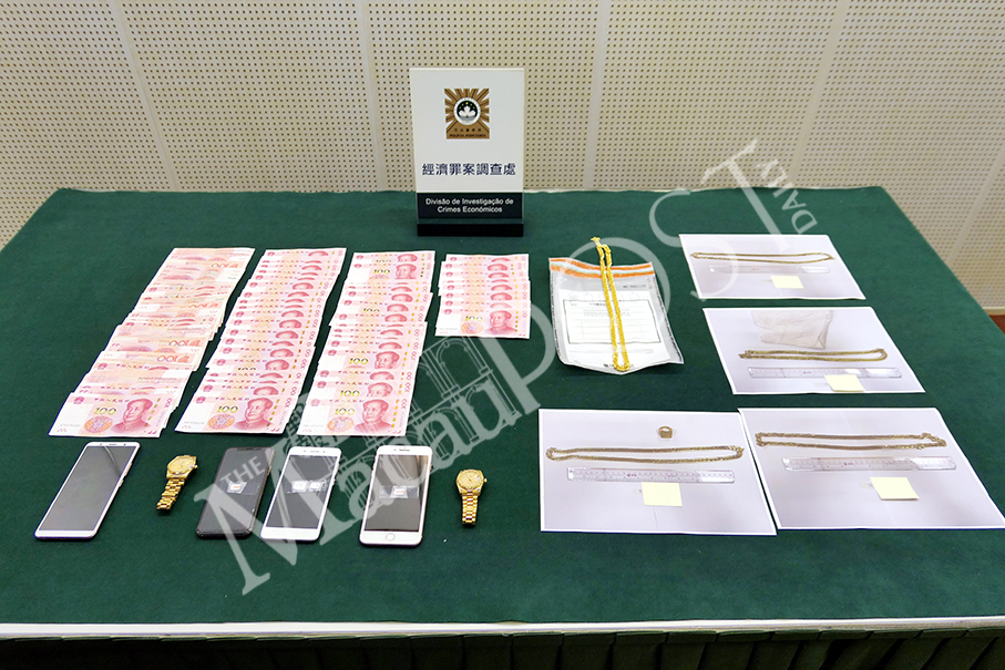 The Judiciary Police (PJ) arrested three male mainlanders on Wednesday for two identical frauds, each time offering to sell the victim a gold necklace at a low price, showing the victim the genuine one, confirming its genuineness in a jewellery shop and swapping the genuine necklace with a counterfeit one when finalising the deal, PJ spokesman Ho Chan Nam said during a special press conference yesterday.