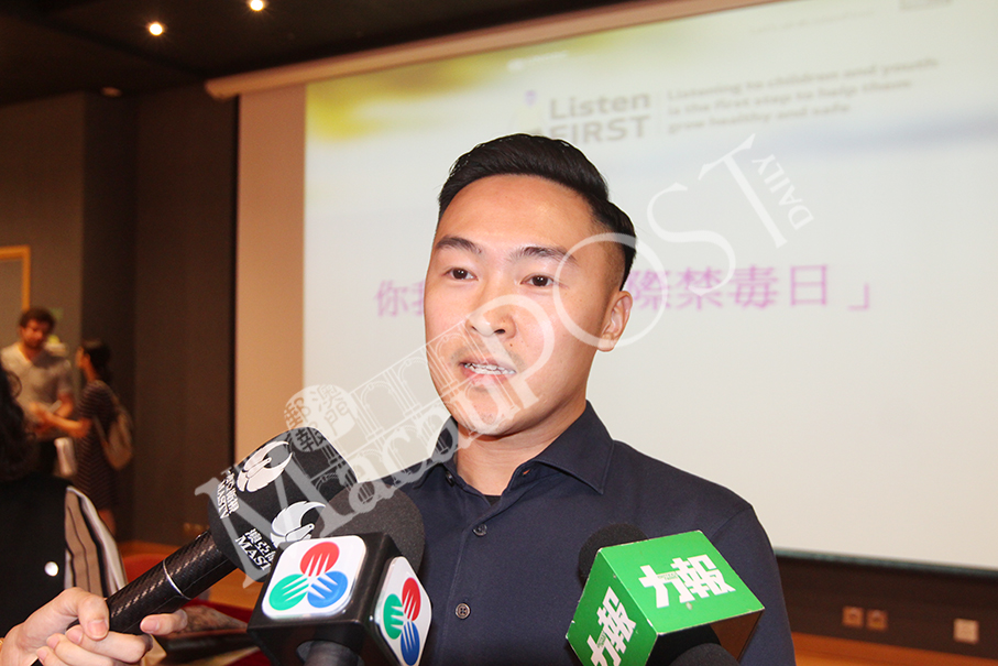Social Affairs Bureau (IAS) Drug Addiction Treatment and Rehabilitation Department Chief Richard Cheang Io Tat speaks to the media after yesterday’s conference.