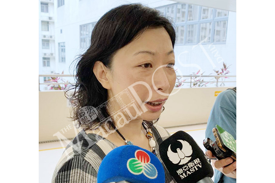 Cultural Affairs Bureau (IC) President Mok Ian Ian speaks to reporters at a school run by the Macau Women’s General Association (Fu Luen) in Areia Prera district yesterday. Courtesy: TDM