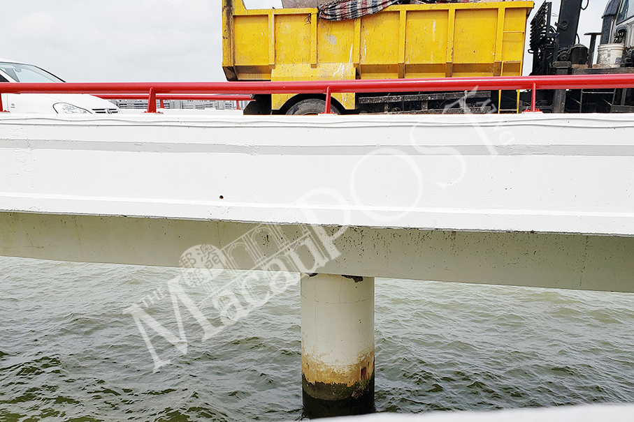 According to local media reports yesterday, at around 1:30 p.m. the Public Security Police (PSP) received reports that pieces of concrete were believed to have fallen off a pillar near the peninsula’s entrance to the bridge. The police called Transport Bureau (DSAT) and DSSOPT officials as well as firefighters to the scene.