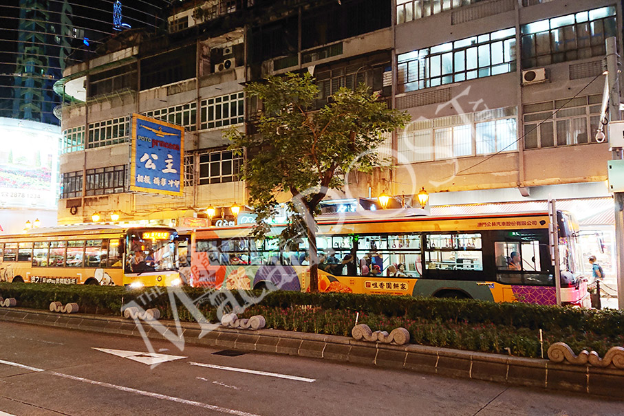 Two public buses stop at a traffic light-controlled crossing in Avenida do Infante D. Henrique last night. Photo: Tony Wong