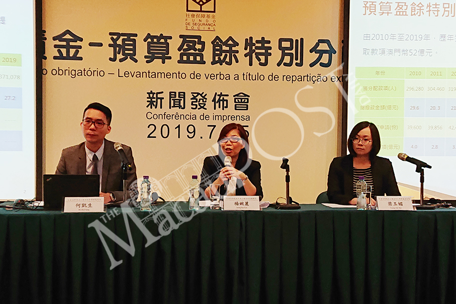 The Social Security Fund, which is headquartered on the 18th floor of China Civil Plaza in Nape, made the announcement during a press conference in a pressroom on the 19th floor of the building, where a number of service counters run by the Macau Trade and Investment Promotion Institute (IPIM) are located.