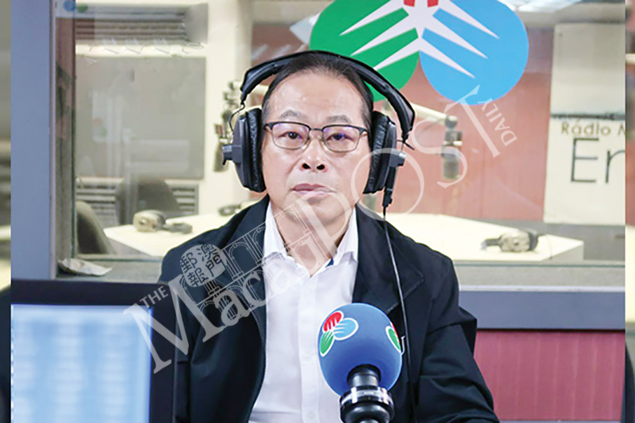 João Augusto da Rosa, an assistant to the commissioner-general of the Unitary Police Service (SPU), speaks during yesterday’s phone-in programme hosted by government-owned broadcaster TDM’s Chinese-language radio channel yesterday. Courtesy: TDM