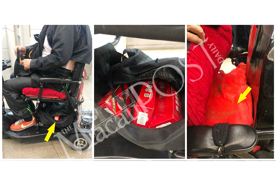 The Macau Customs Service said in a statement yesterday that a 70-year-old local man in an electric wheelchair attempted to smuggle 3,200 cigarettes into Macau via the Barrier Gate border checkpoint on Monday, with some of the cigarettes hidden in different parts of his wheelchair, while the remainder were concealed in his bag and around different parts of his body.