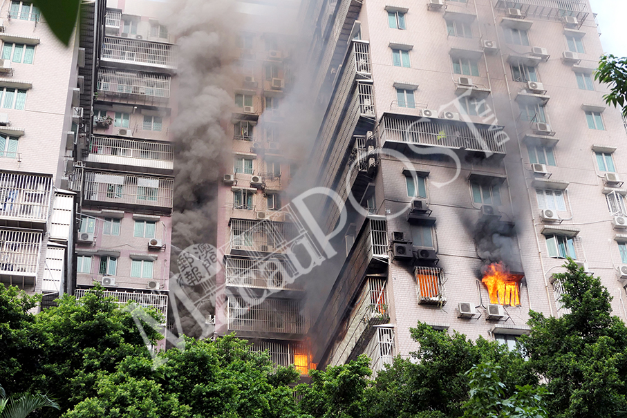 The fire broke out in a flat on the sixth floor of Block 4 of Kong Fok Cheong Garden next to Areia Preta Park. The estate comprises eight blocks. The fire spread to an adjacent flat and a flat on the seventh floor. The fire was only brought under control at 7:30 p.m. before being finally put out at around 8:30 p.m.19 fire engines, 110 firefighters