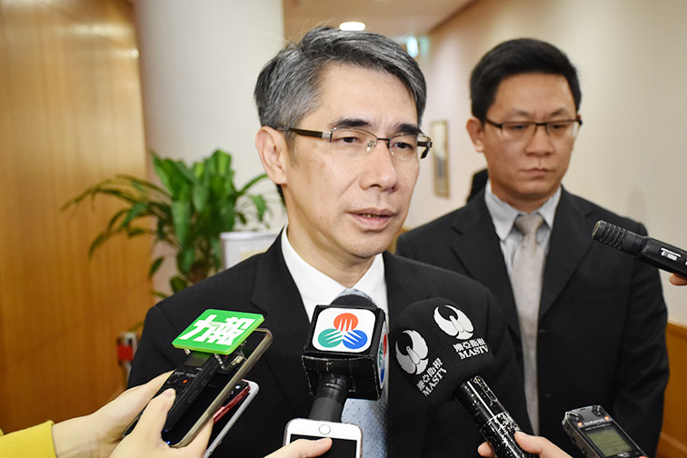 Housing Bureau (IH) Director Arnaldo Santos speaks to reporters after a closed-door meeting at the legislature yesterday. Photo: Leong Lok Ian