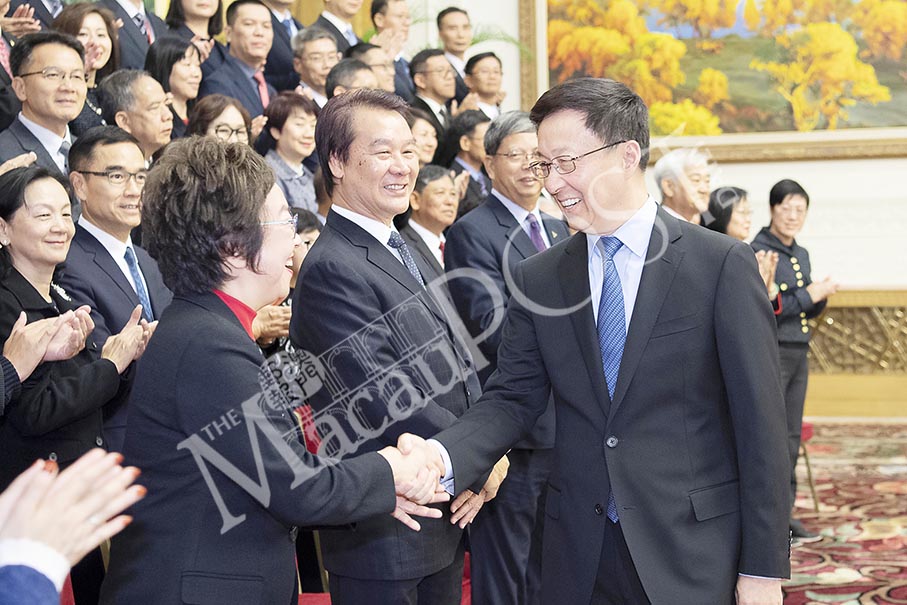 BEIJING – First Vice Premier Han Zheng met yesterday with a delegation from Macau at the Great Hall of the People in Beijing.