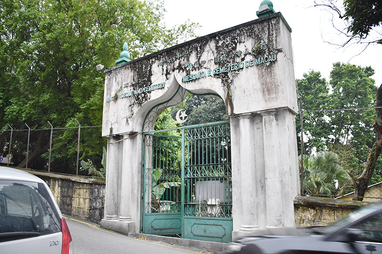 This photo taken yesterday shows the entrance to the Macau Islamic Mosque and Cemetery in Ramal dos Mouros. Photo: Leong Lok Ian