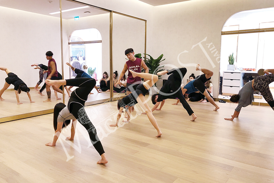 Local media takes part in an “Animal Flow” workshop in the “experimental space” inside the new Lululemon store in Sands Cotai Central last week. Photo: Monica Leong