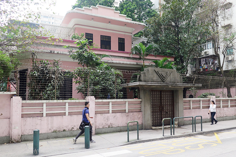 Pedestrians walk past the Chui family mansion in Avenida do Ouvidor Arriaga yesterday. – Photo: Davis Ip