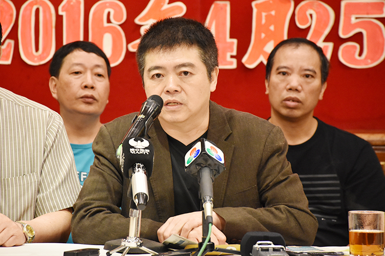 Macau Iong Hap Tong Fresh Meat Traders Association Chairman Che Su Peng addresses a press conference at Ka Nin Wa Restaurant in Rua de Pedro Coutinho yesterday. Photo: Leong Lok Ian