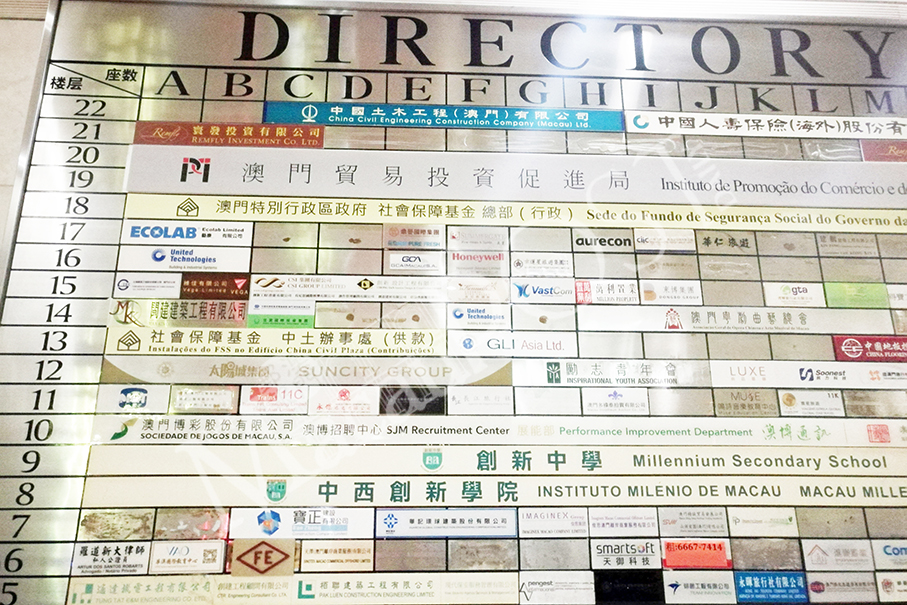 This photo taken yesterday shows a sign in the lobby of the China Civil Plaza Building in Nape district indicating that the headquarters of the Social Security Fund (FSS) is located on the building’s 18th floor. Photo: Kristy Chan