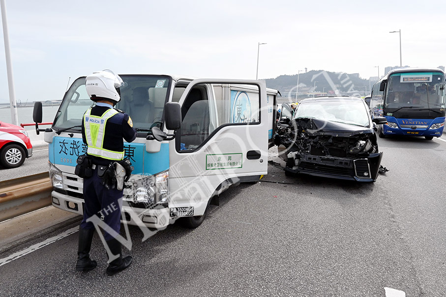 The crash happened at around 12:30 p.m. yesterday in the direction from Taipa to the peninsula. As the lorry being driven up the slope in the right-hand lane broke down, the two Vietnamese got out of the vehicle and pushed it, Lao said.