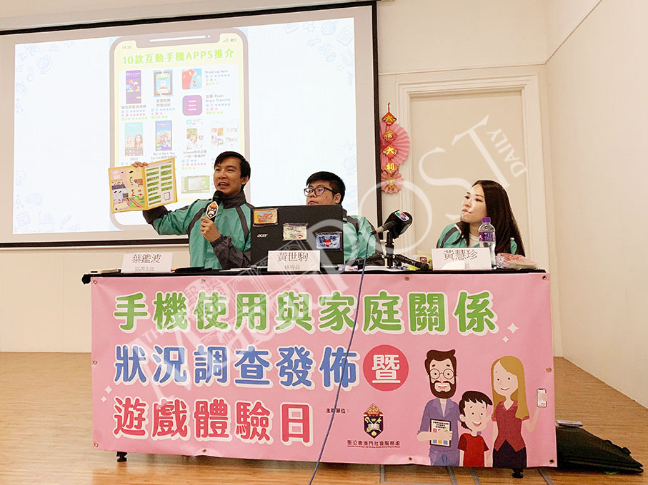 The findings were released during a presentation hosted by the Sheng Kung Hui Macau Social Services Coordination Office on the premises of the Sheng Kung Hui Northern District Youth Work Team (Fai Chi Kei). The one-day event was focused on the effect of smartphone use on family relationships.