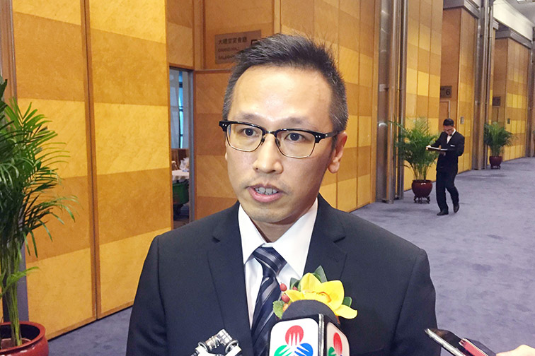 Transportation Infrastructure Office (GIT) Assistant Co-ordinator Peter Chow Wai Tak talks to reporters on the sidelines of a public event at Macau Tower yesterday. Photo:MPDG