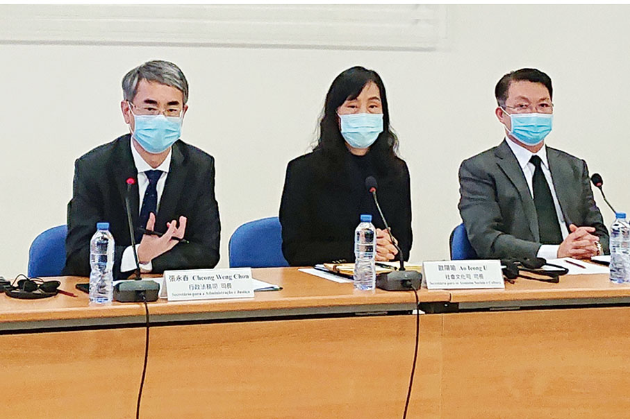Two other policy secretaries, Secretary for Administration and Justice André Cheong Weng Chon and Secretary for Social Affairs and Culture Elsie Ao Ieong U also attended the press conference. The government has five policy secretaries.