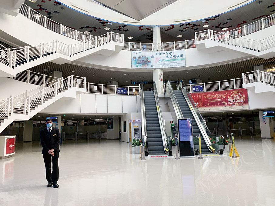 A staff member is on duty at the empty Outer Harbour Ferry Terminal.